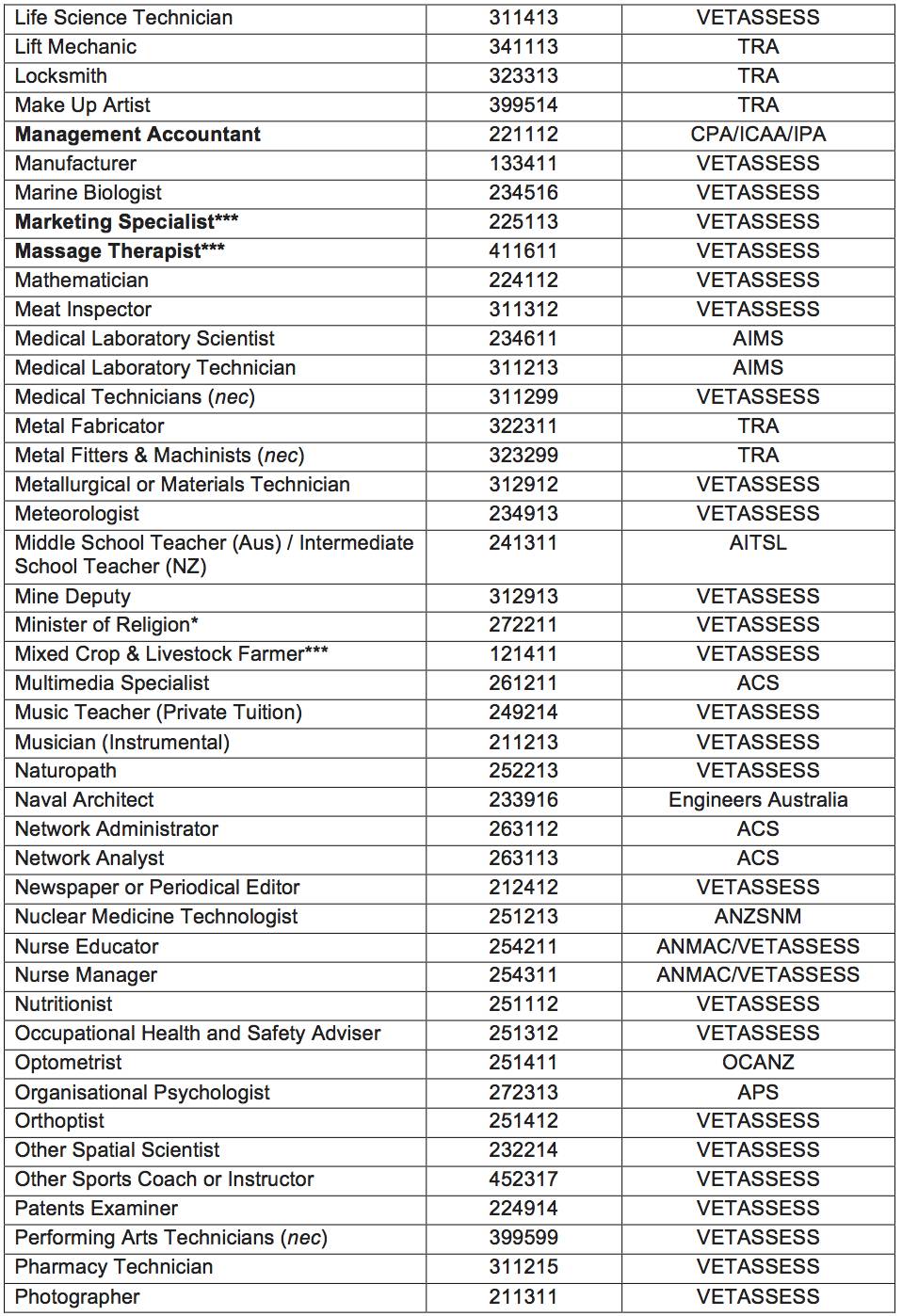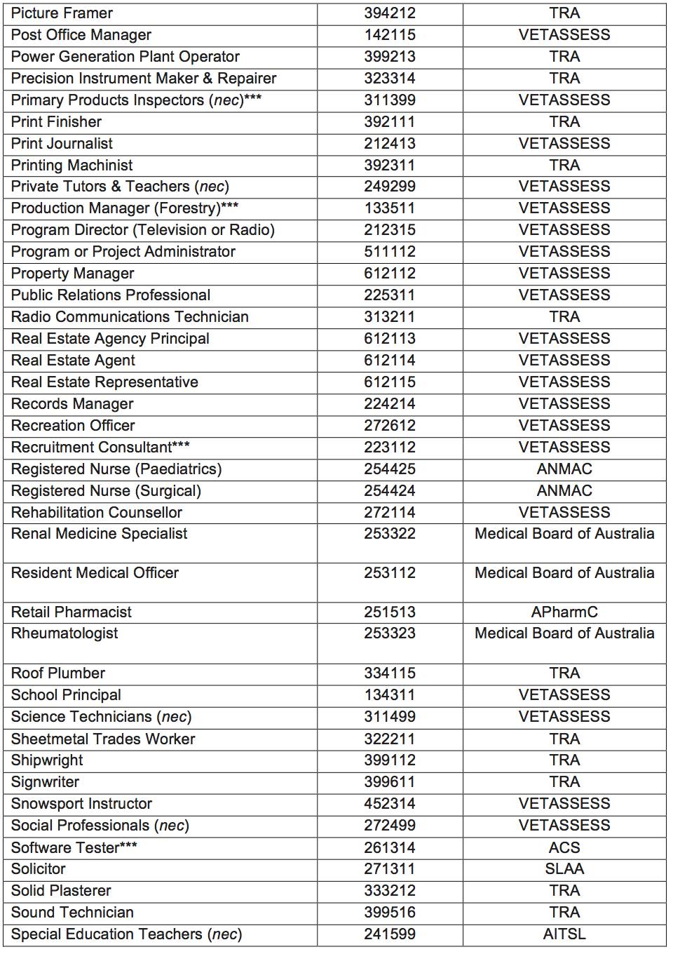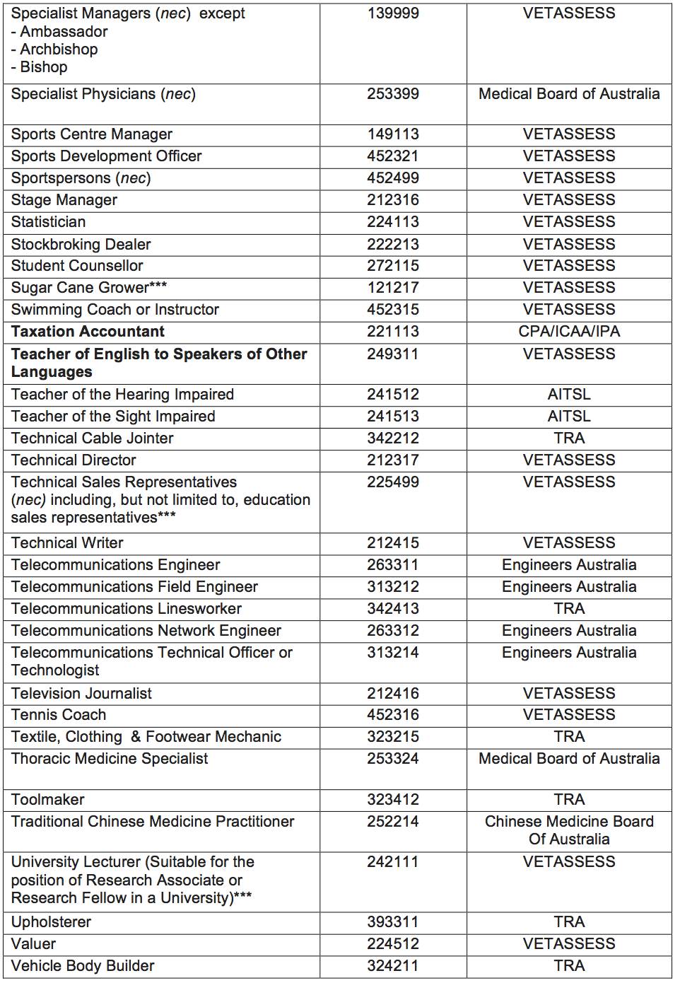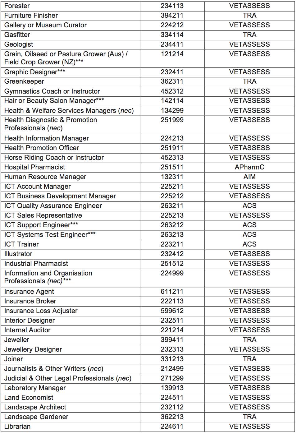 以下是在移民局合并职业清单的职业(但不在塔州清单里)