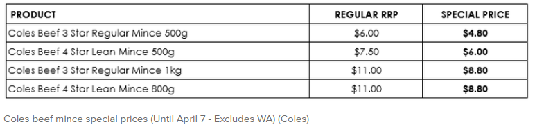 Coles的牛肉末近期有八折的优惠活动,预计活动将至4月7日(西澳除外)。
