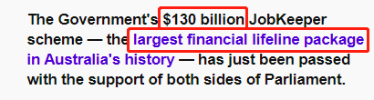 标题: JobKeeper补贴计划被通过!此补贴将持续发放6个月!是否有资格获得$1500/两周补贴? [打印本页]