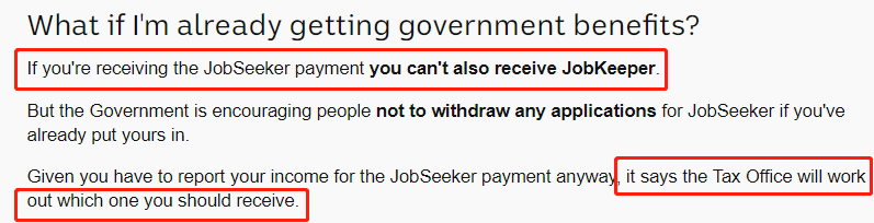如果已经在领取失业补贴(JobSeeker payment),将不能获得留职补贴。