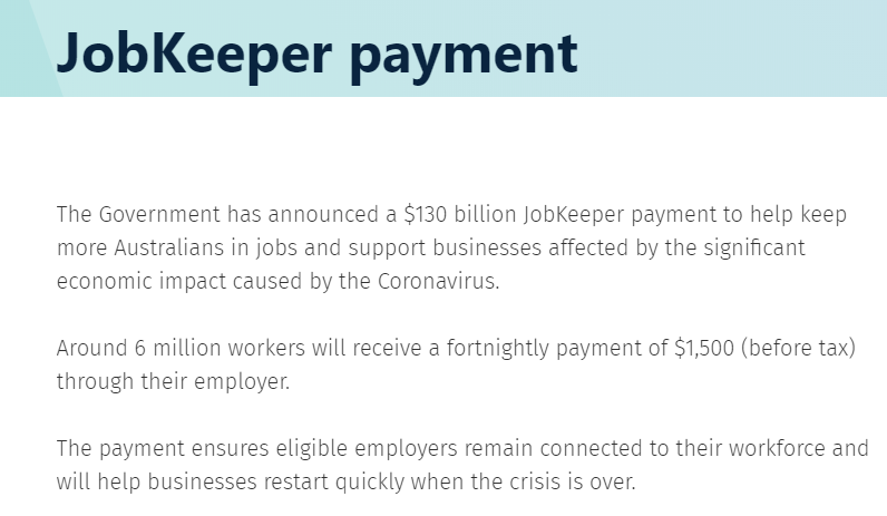 标题: JobKeeper补贴计划被通过!此补贴将持续发放6个月!是否有资格获得$1500/两周补贴?