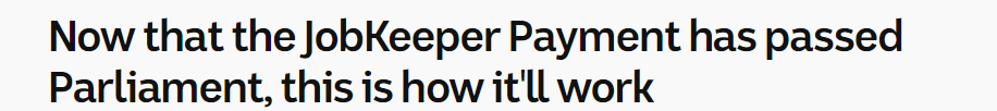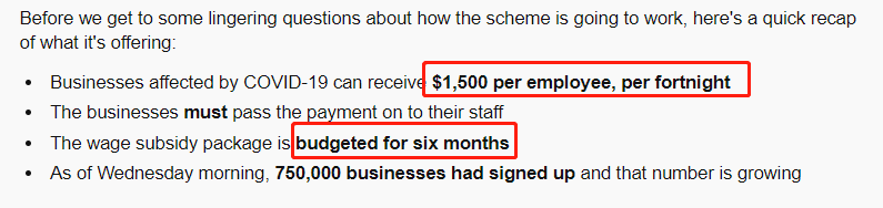 留职补贴政策(JobKeeper Payment)昨晚已被通过。