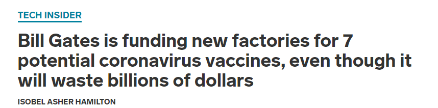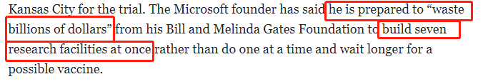 在世界范围内,不仅仅是科学家在为这场“战疫”而奋斗,亿万富翁比尔·盖茨也对COVID-19疫苗的研发进行了大力的支持。