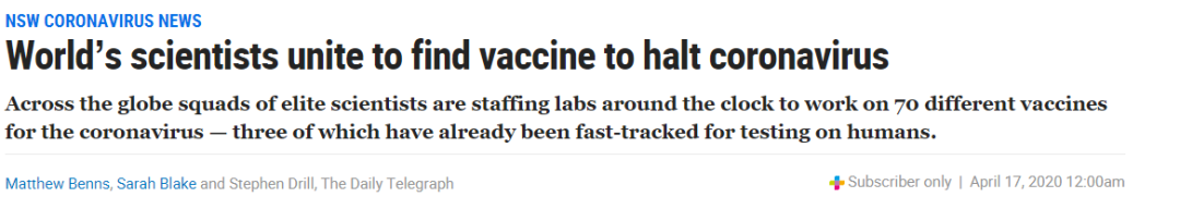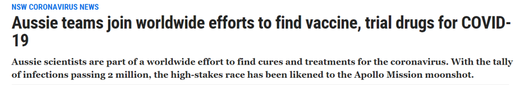 尽管世界各地有至少35个团队在实验室没日没夜的研发疫苗,但研究人员表示,澳大利亚对疫苗的科研水平处于世界前沿,澳大利亚拥有自己开发的疫苗的意义非常重大,因为全球有超过了200万人感染COVID-19,疫苗的需求量是巨大的,澳大利亚的疫苗研发不仅可以让澳洲人第一时间接受疫苗的注射,还可以减缓全球性的“大流行”疫情。