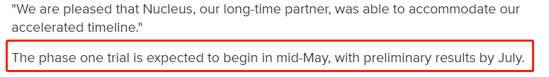 Nucleus的CEO Cameron Johnson表示:“此试验方法有着悠久的历史,并且Novavax有着杰出的往绩;我们有能力在接下来的几周内进行这支疫苗的“首次人类试验”。”