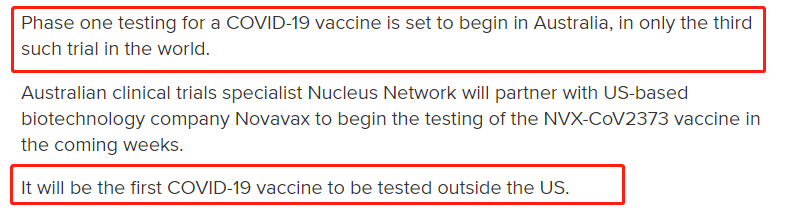 澳大利亚临床试验专家Nucleus Network将与美国生物技术公司Novavax合作,在未来几周内开始试验NVX-CoV2373疫苗。