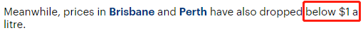 与此同时,布里斯班和珀斯的汽油价格也跌至每升1澳元以下。