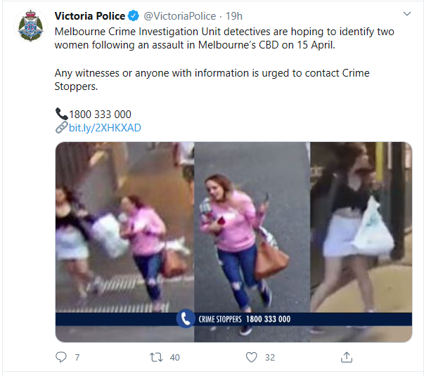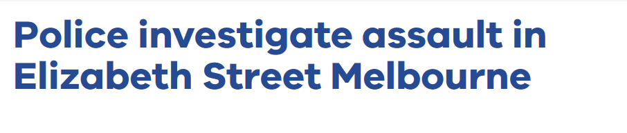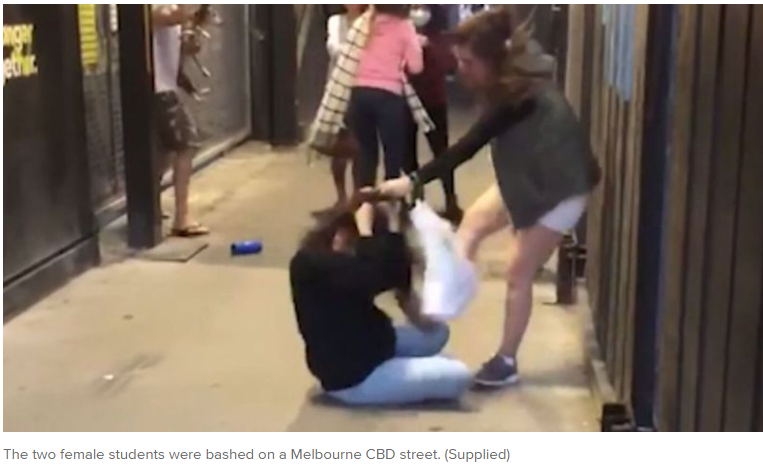 维多利亚警方表示,两名女性留学生受害者(一名18岁,一名20岁)大约在周三下午5点30分在墨尔本的伊丽莎白街上行走,当时有一群人向她们面对面走来,这个小团体中有两名女性一名男性。
