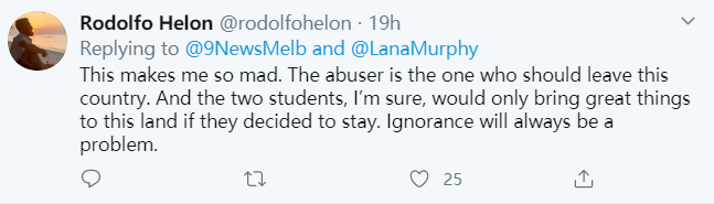“这让我很生气。 打人者才是应该离开这个国家的人。我敢肯定,如果这两名学生决定留下,他们只会为这片土地带来美好的东西。无知才是根本问题。”