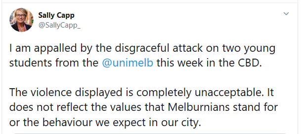 墨尔本市长Sally Capp在社交媒体上的大力谴责了此次暴力事件。