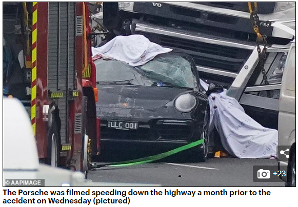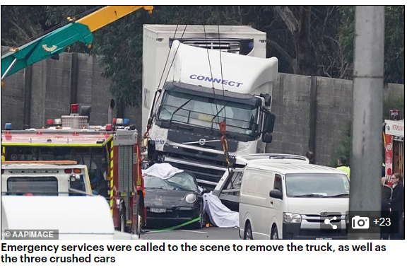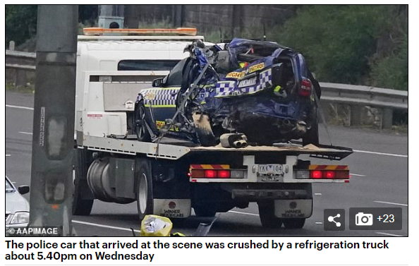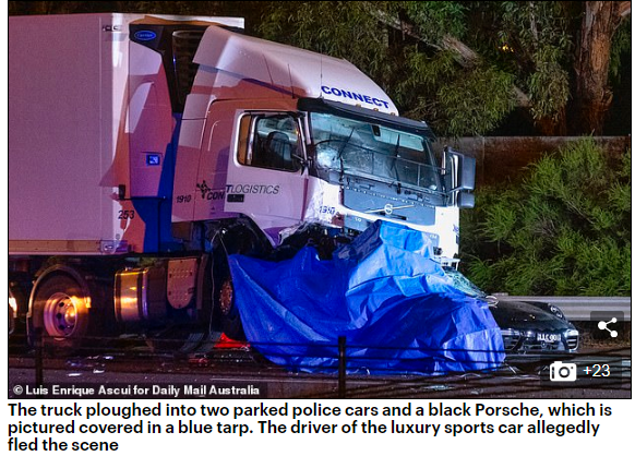 周三下午5:40左右,墨尔本东部高速公路有一辆保时捷以140kph的速度行驶,有四名警察拦下了这位超速的保时捷911,当警察在应急车道上与保时捷驾驶者谈话是,一辆卡车撞向车道边的警察,四名警员当场死亡。