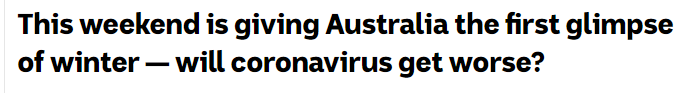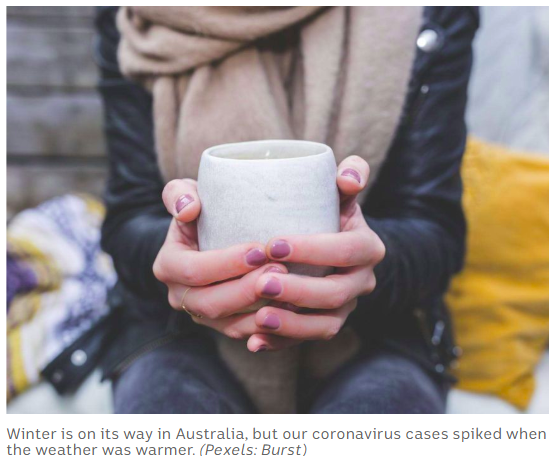 这个周末澳洲气温骤降,临近冬季,季节的变化促使人们猜测天气将如何影响COVID-19的传播,以及疫情是否会迎来第二波。