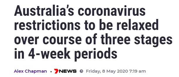 在接下来的三个月中,每个月,各州和各领地的州长及卫生专家都将逐步的放宽各区域的禁令,让澳洲人的生活逐步回归正常。每个重要解封步骤之间的时间差(四周),将使州和领地领导人以及卫生专家有充裕的时间分析各自的关键数据。