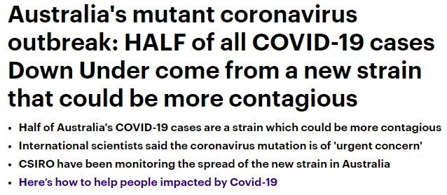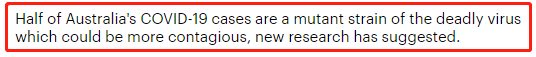 标题: 澳洲一半确诊病例感染新冠病毒突变株!或将更具传染性!