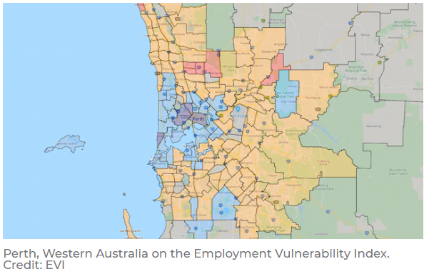 标题: 珀斯郊区失业率偏高!City中心失业风险最低!专家绘制就业脆弱性指数!