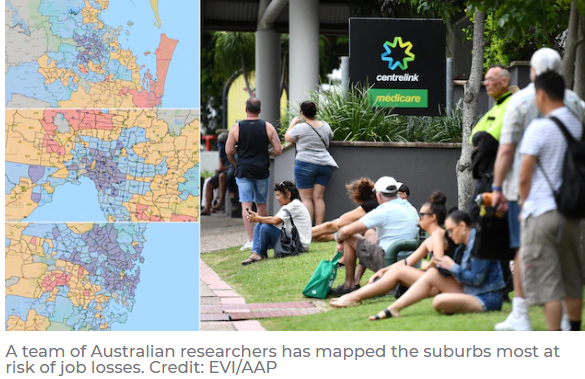 在经济不景气的情况下,一组澳大利亚研究人员绘制了COVID-19失业风险最高的郊区的地图。
