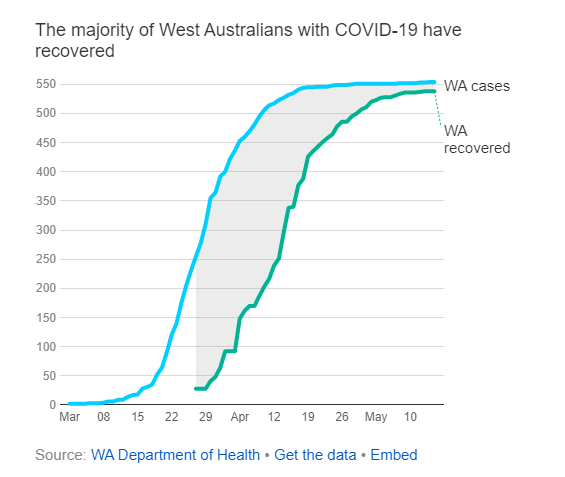 目前该州总数为554例,西澳目前仅有七人还在传染期。