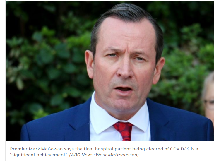 州长Mark McGowan表示,剩下的最后一名COVID-19患者曾在重症监护室接受治疗,但现已康复。