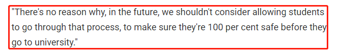 “没有理由为什么我们不考虑让留学生也通过这个方式返回澳洲,通过这些手段,可以确保他们在去学校上课之前是100%安全的。”