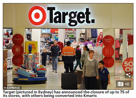 苦苦挣扎的澳大利亚零售商Target将关闭其75家商店,并将其他92家商店转变为Kmarts。