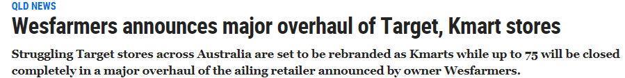 所有者Wesfarmers于本周五早上向投资者宣布,此次重组将减少Target的“不可持续”成本基础,并使其专注于利润更高的Kmart。