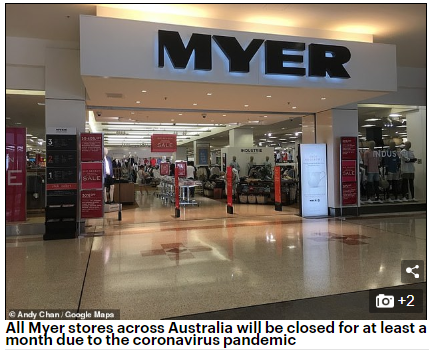特别是Myer,在政府推出JobKeeper补贴之前,大约有10,000名员工无薪停工。