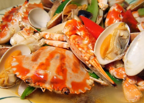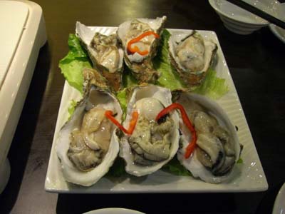牡蛎又称蚝,澳大利亚的蚝又肥又干净,还便宜($6/12只)。蚝可以生吃,也可以蒸吃。有很多香港人专到澳大利亚吃生蚝的,还戏称值得一张机票钱。新鲜的蚝连盖都没有打开,顾客可以看着营业员开盖后,挤鲜柠檬汁至蚝肉上佐酱生吃,美味无穷。