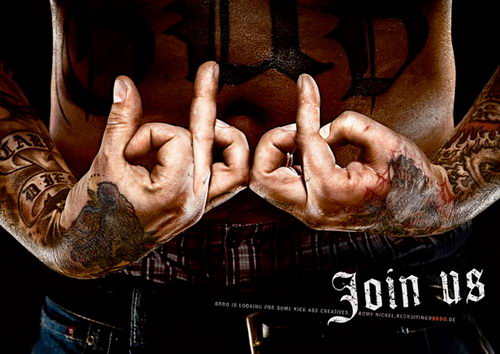 ▲ BBDO广告公司的招聘广告,用手指组成公司名称