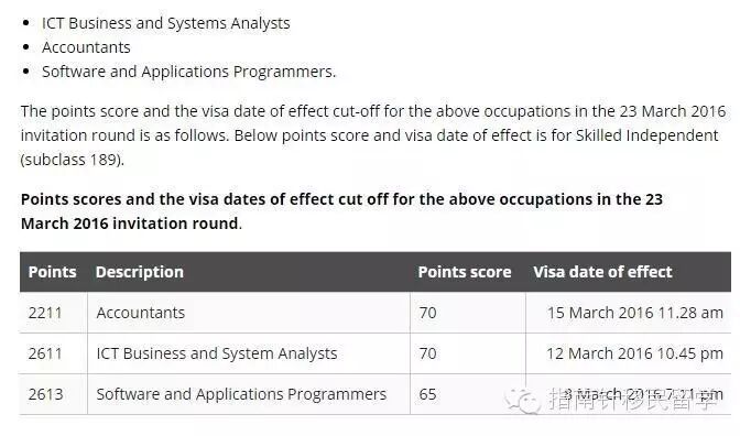 第一, 按照这几轮的趋势来看,无论如何65分都是一个最基本的分数了,相信后面的受邀主流人群一定是65分会计申请人,所以会计学生一定要努力的把自己的移民分数加至65分,尽快攒够分数及早递交,不要再浪费更多的时间。目前主流的加分方式是:雅思四个7(10分)、NAATI课程(5分)、PY职业年课程(5分)、1年澳洲工作经验(5分)、州政府担保加分(5分)、配偶加分(5分)。