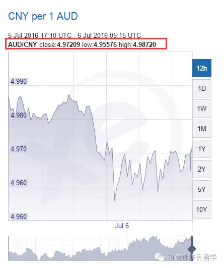 过去的12小时 7月6日05:10-7月6日17:15(澳币$1等于人民币):最高4.98,最低 4.95,收4.97(元)