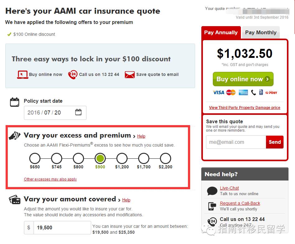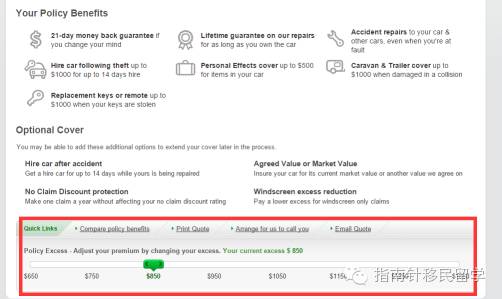 BudgetDirect出乎意料的竟然是三家里面价格最高的,小编觉得其实大家cover的项目都差不多,最多在excess上面做点文章。比如BudgetDirect就比AAMI的少了50块钱,所谓excess 是说你一旦要申请保险索赔,你自己要交一部分钱,这个excess可以自己改,但是excess数目越低保险费用越高,其实就是羊毛出在羊身上的道理。