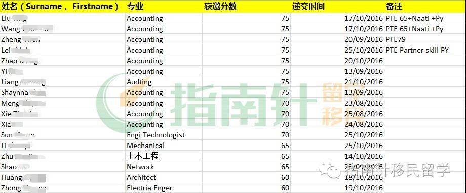 本轮工程专业——Electrical,Architect的获邀分数继续恒定在60分,时间虽从10月初到10月19日不等,但是名额相对充足,暂时攒足60分不会有太多变数。是奋斗大军中稍显轻松的群体。Civil(14.10.2016),mechanical(25.10.2016)本轮65分拿到邀请。