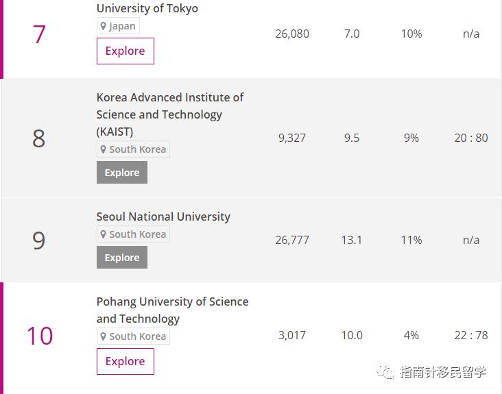 韩国表现较为抢眼,但仍逊于中国大学,韩国科学技术院,首尔国立大学,韩国浦项工科大学分别占据了前十名的后三位。以及前100名的15位。除此之外,还有一个亚洲国家的大学表现出色,大家一定意想不到,那就是以色列。虽然是个饱经战乱的中东国家,但是并不妨碍其发展教育事业,以色列希伯来大学排名亚洲21,以色列共有5所大学排名亚洲前100,沙特阿拉伯,土耳其是西亚国家中表现最出色的。